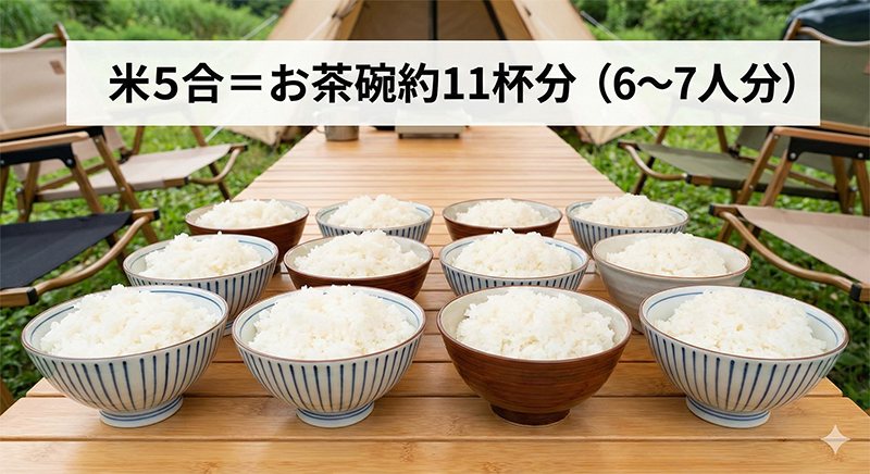 つまり、米5合あれば、大人6人~8人のグループでも十分まかなえる量と言えます。