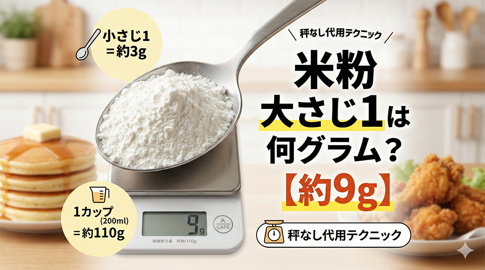 米粉は小麦粉よりも粒子が細かいため、スプーンへの詰め方やメーカー(製菓用か料理用か)によって、実は1〜2グラムの誤差が生まれやすい食材でもあります。