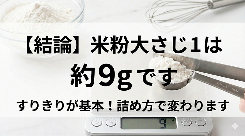 結論からお伝えすると、米粉大さじ1は、基本的に「約9グラム」です。
