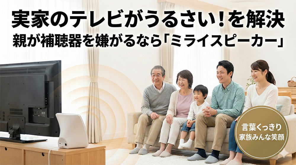 機械が苦手な親御さんにとって、「何も操作しなくていい(テレビをつければ勝手に鳴る)」というミライスピーカーの特性は、何物にも代えがたいメリットです。