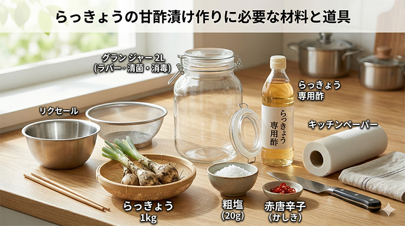らっきょうの甘酢漬け作りに必要な材料と道具